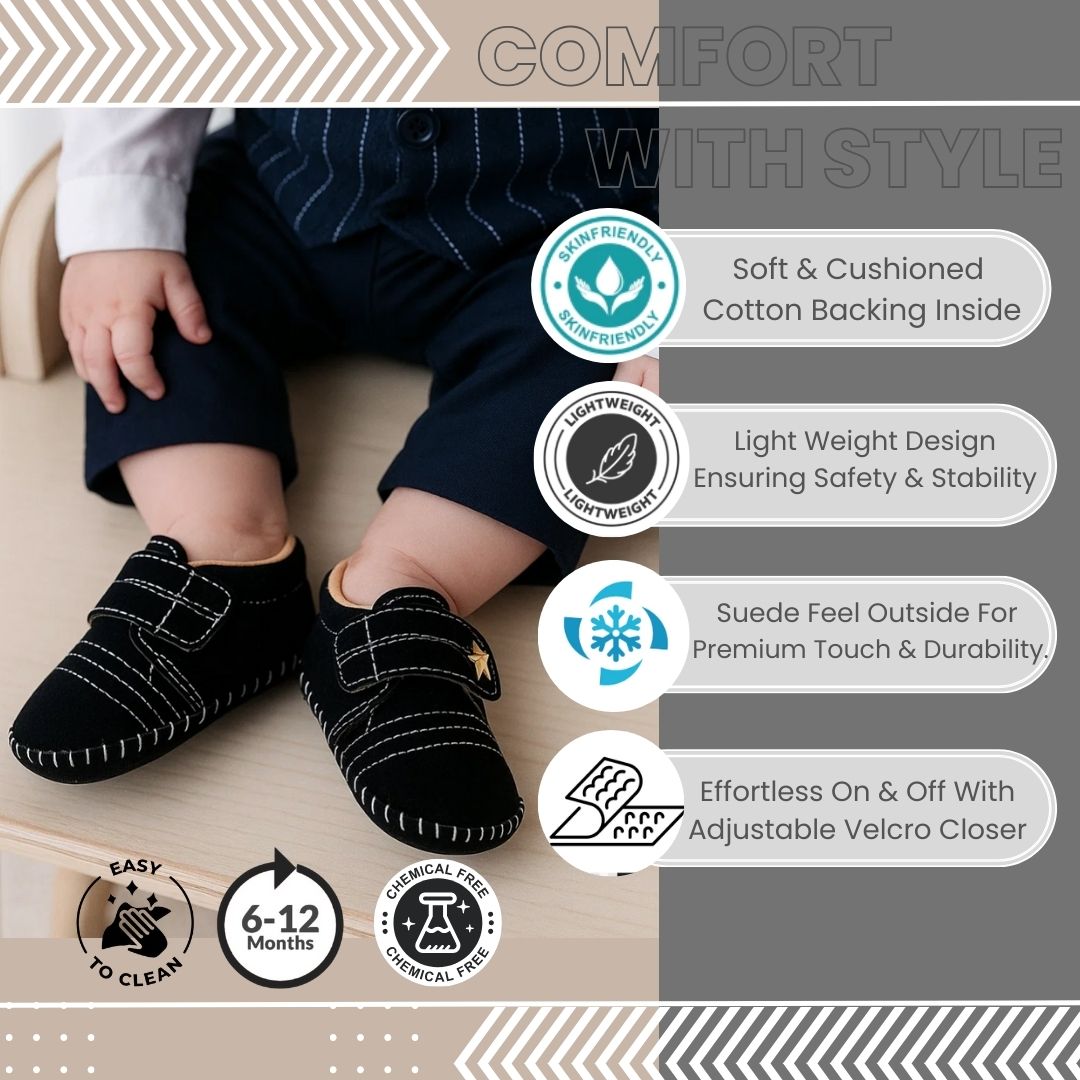 6 To 12 Months Baby Boys & Girls Velvet Star Booties (Black)-BT5019