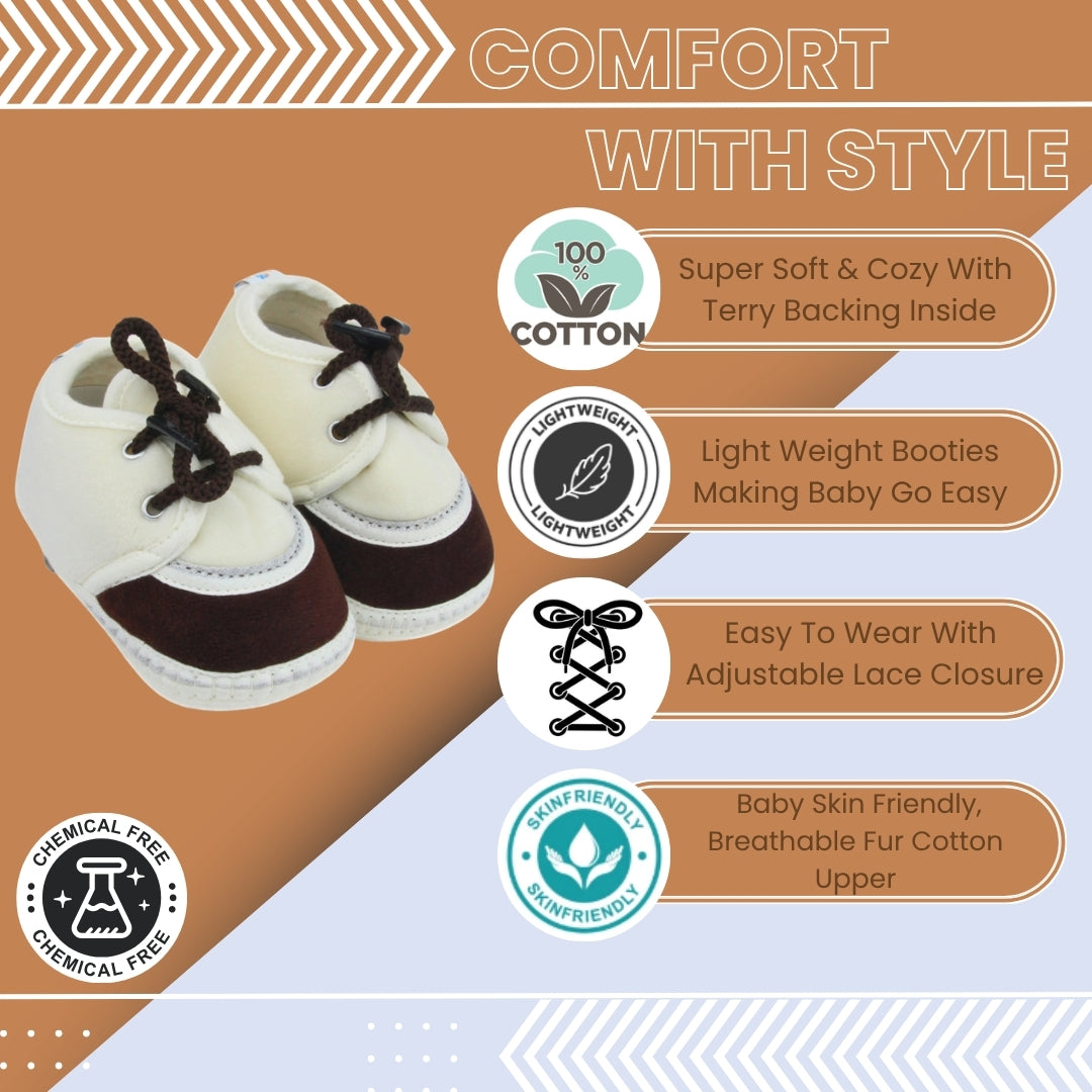 6 To 12 Months Baby Boys & Baby Girls Lace Velvet Shoe/Booties (Brown,Off White)-BT4946