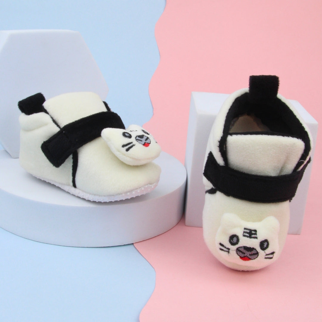 6 To 12 Months Baby Boys & Girls Animal Face Booties (Off White,Black)-BT5027