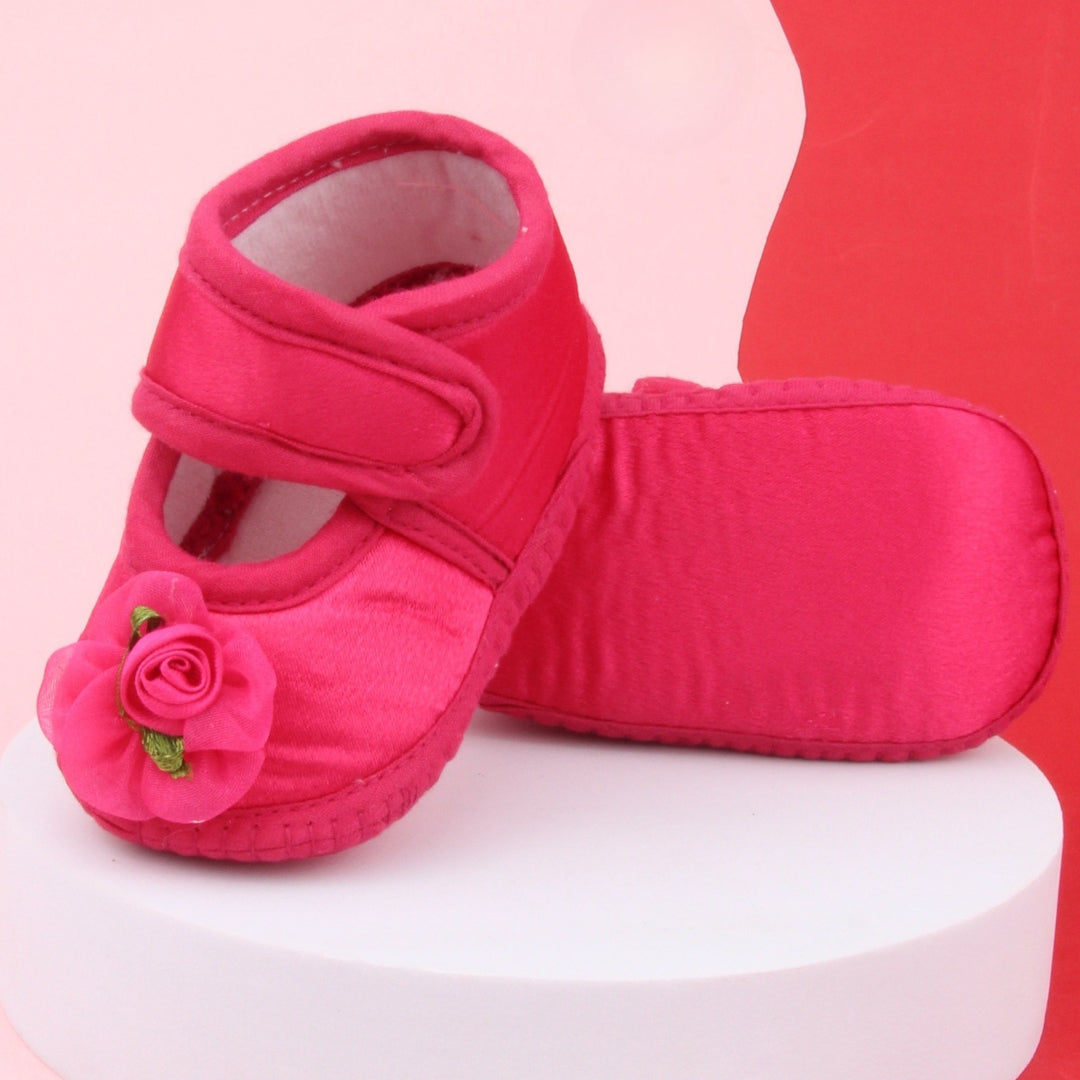 6 To 12 Months Baby Girls Satin Floral Sandal/Booties (Rani)-BT5206