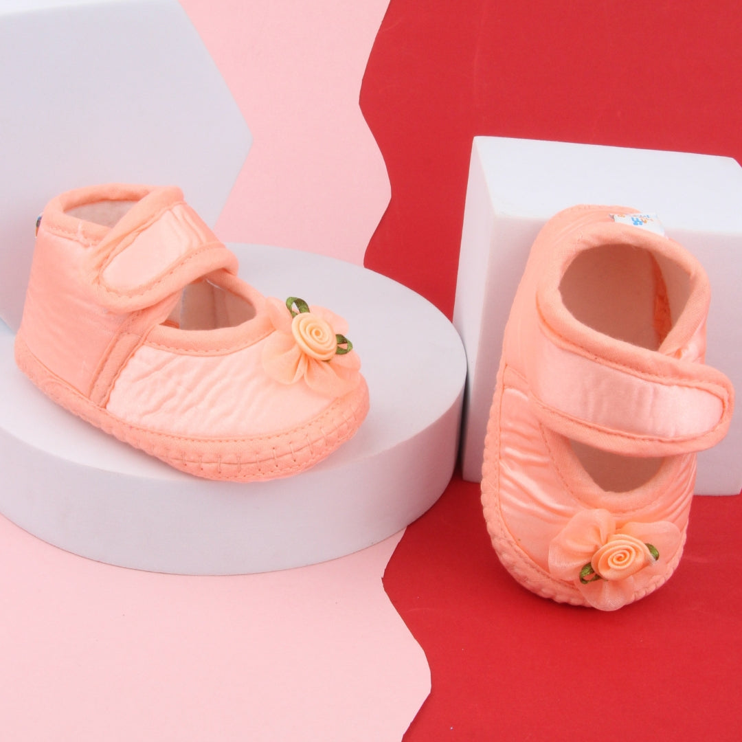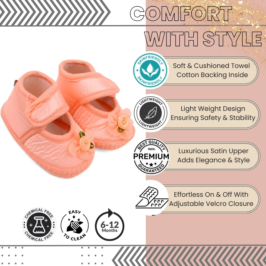 6 To 12 Months Baby Girls Satin Floral Sandal/Booties (Orange)-BT5207