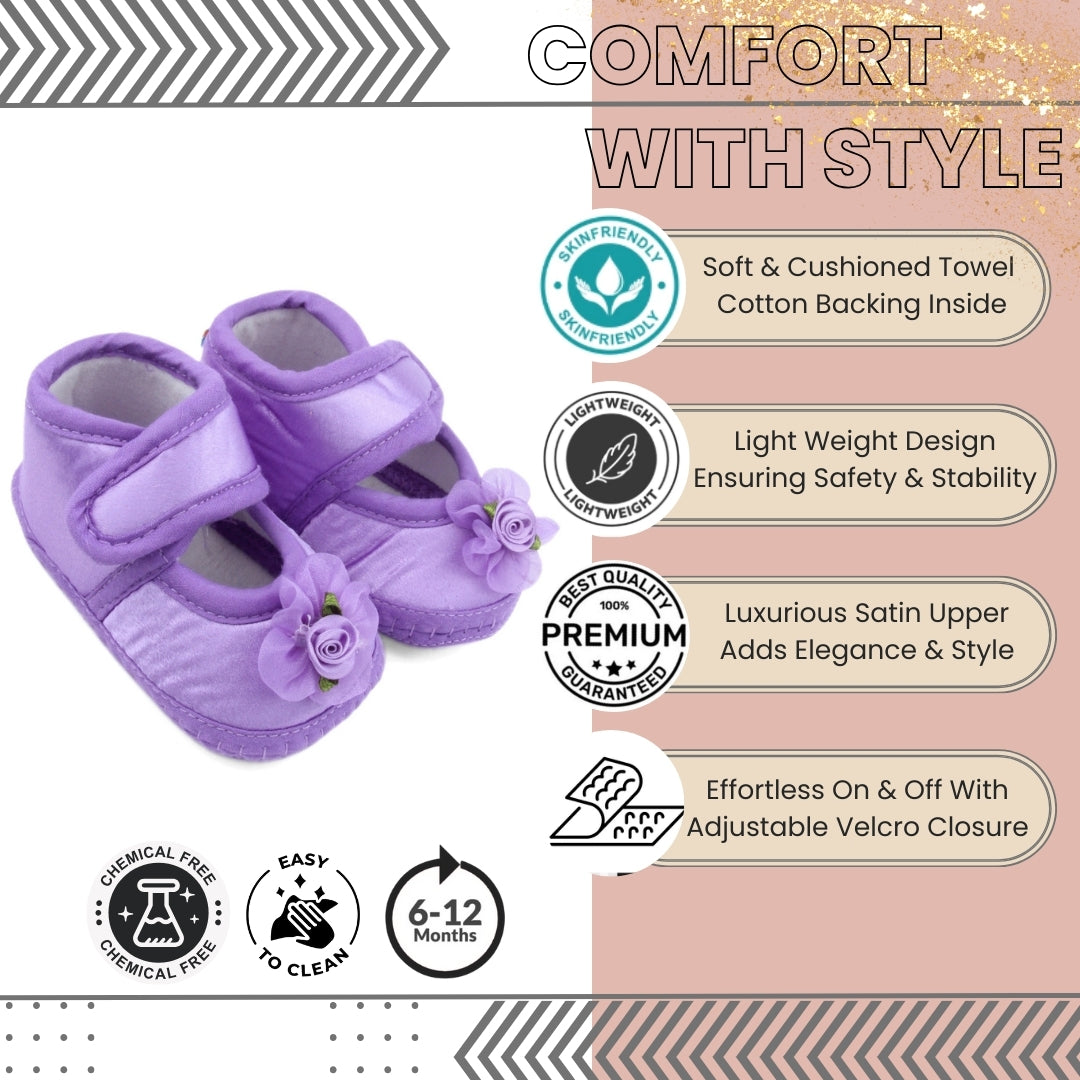 6 To 12 Months Baby Girls Satin Floral Sandal/Booties (Purple)-BT5209