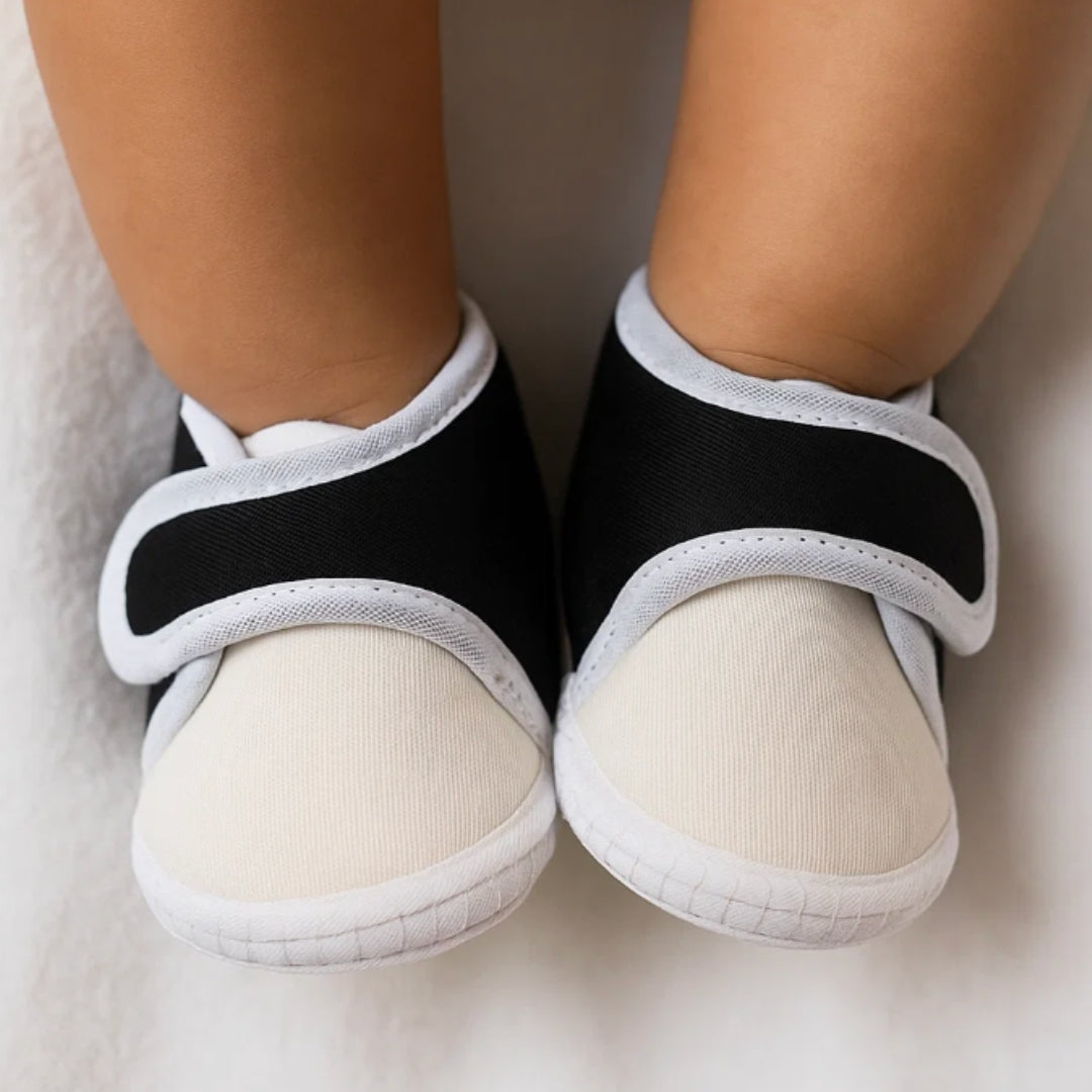 6 To 12 Months Baby Boys & Baby Girls Cute Soft Cotton Pre-Walker Sports Booties (WhiteBlack)-BT5213