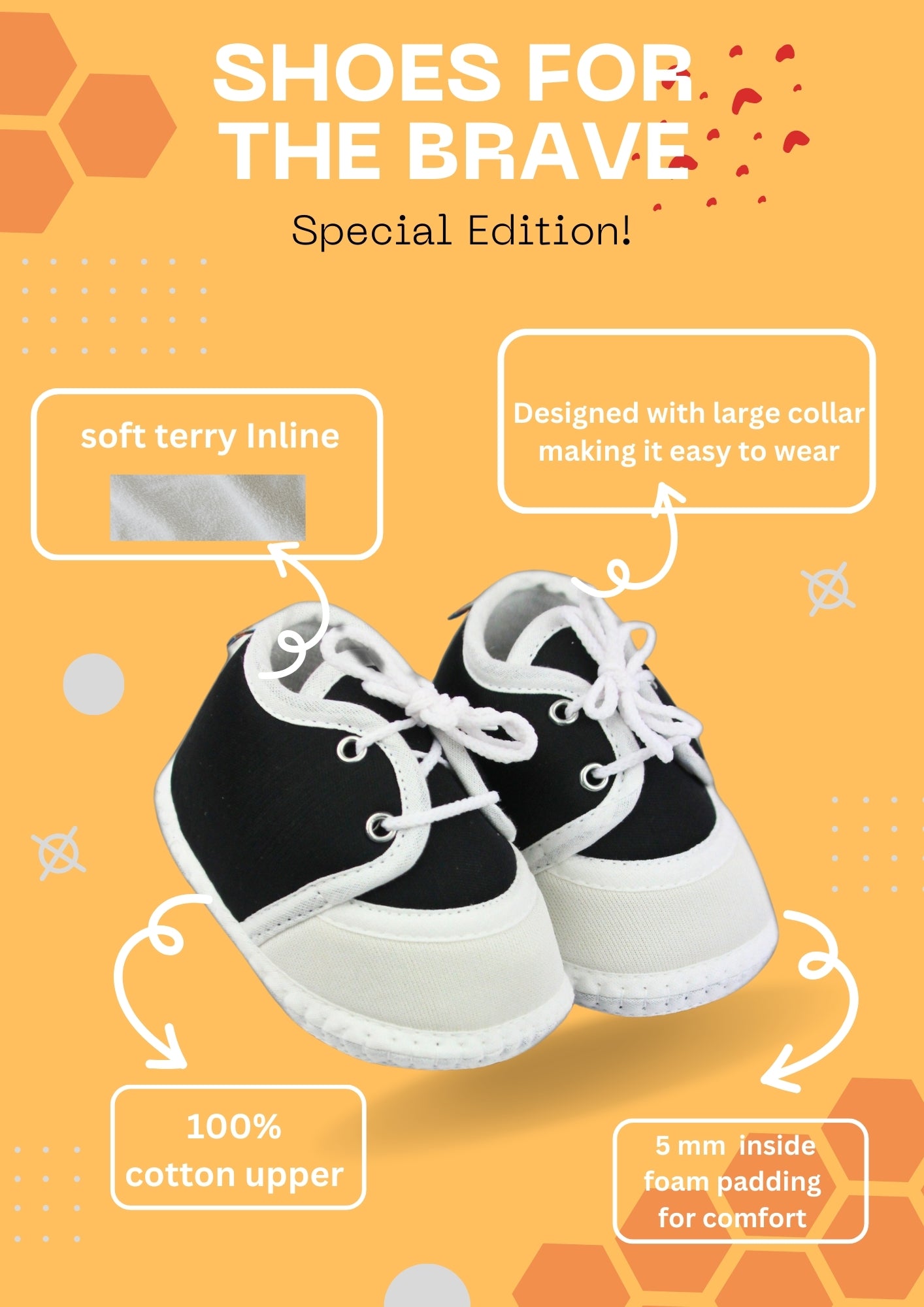Introducing Neska Moda's Adorable Baby Shoe Lace Booties Keep your little one's feet cozy and stylish with Neska Moda's baby shoe lace booties, specifically designed for 0-6 month olds. These charming booties come in a crisp feature a cotton outer layer paired with a terry backing interior, providing a snug and comfortable fit for tiny feet. Effortless First Steps Designed with your baby's first steps in mind, these booties are incredibly lightweight, making every step effortless and comfortable. The soft and breathable materials ensure that your baby's feet stay cool and dry, perfect for those early days of exploration. Easy to Wear and Secure These booties feature an easy-to-use lace closer that makes putting them on and taking them off a breeze. The adjustable lace ensures a secure fit, giving you peace of mind as your baby takes their first steps. Handcrafted with Love and Care What makes these booties truly special is that they are handcrafted with love and care. Made with baby-friendly fabric, you can trust that your little one's skin is safe and protected. With Neska Moda's baby shoe lace booties, you can provide your baby with a comfortable, safe, and adorable footwear experience.