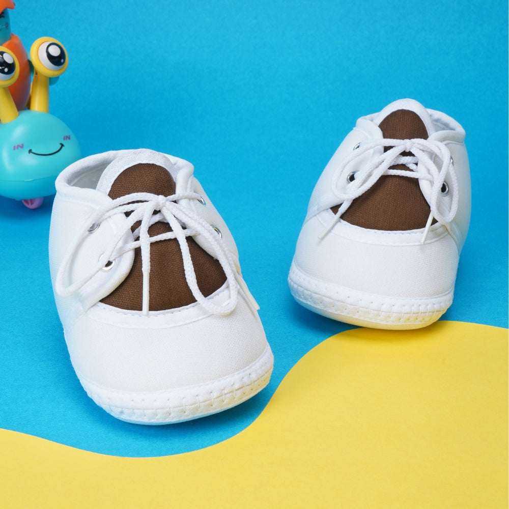 0 To 6 Months Baby Boys & Baby Girls Lace Cotton Shoe/Booties (White,Brown)-BTB4961