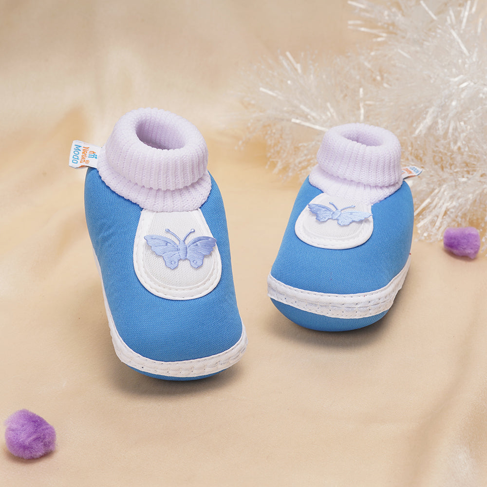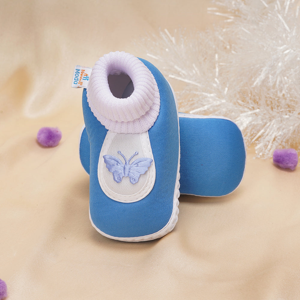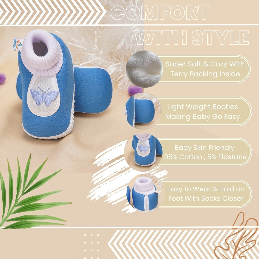 0 To 6 Months Baby Girls Slip-On Cotton Shoe/Booties (Blue)-BTB4974