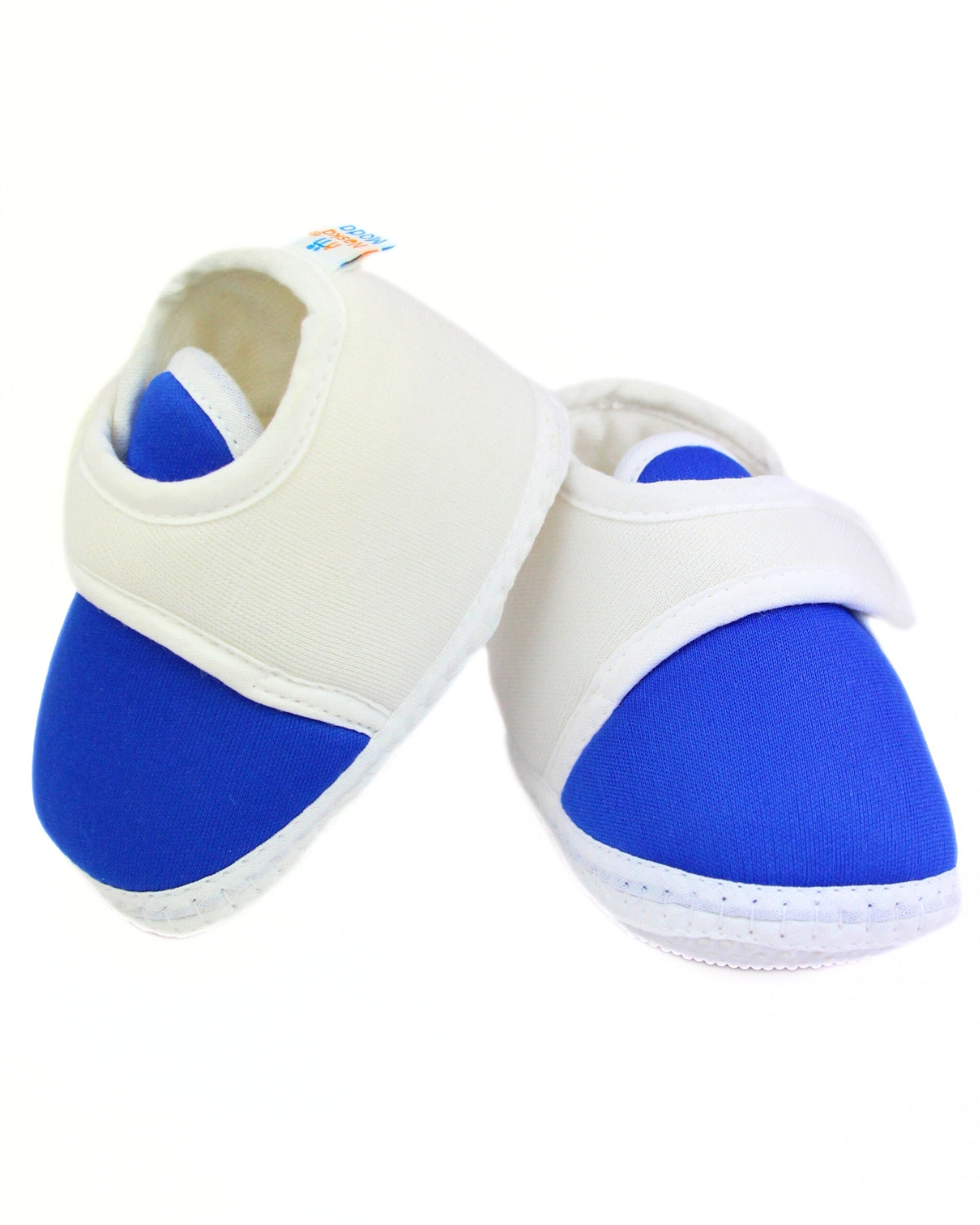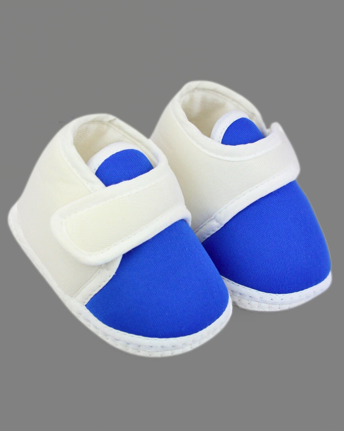 0 To 6 Months Baby Boys & Baby Girls Velcro Cotton Shoe/Booties (White,Blue)-BTB4977
