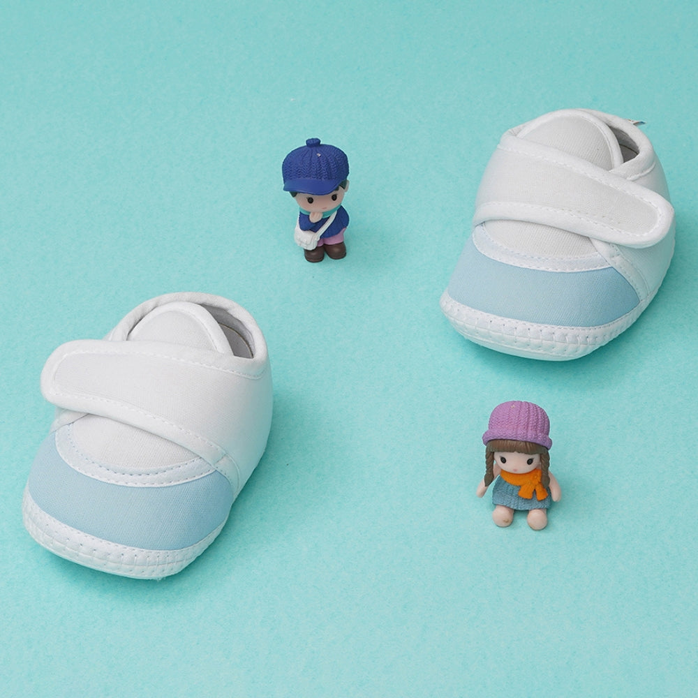 0 To 6 Months Baby Boys & Baby Girls Velcro Cotton Shoe/Booties (White,Blue)-BTB4981