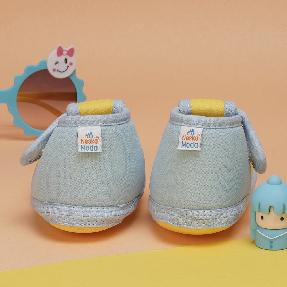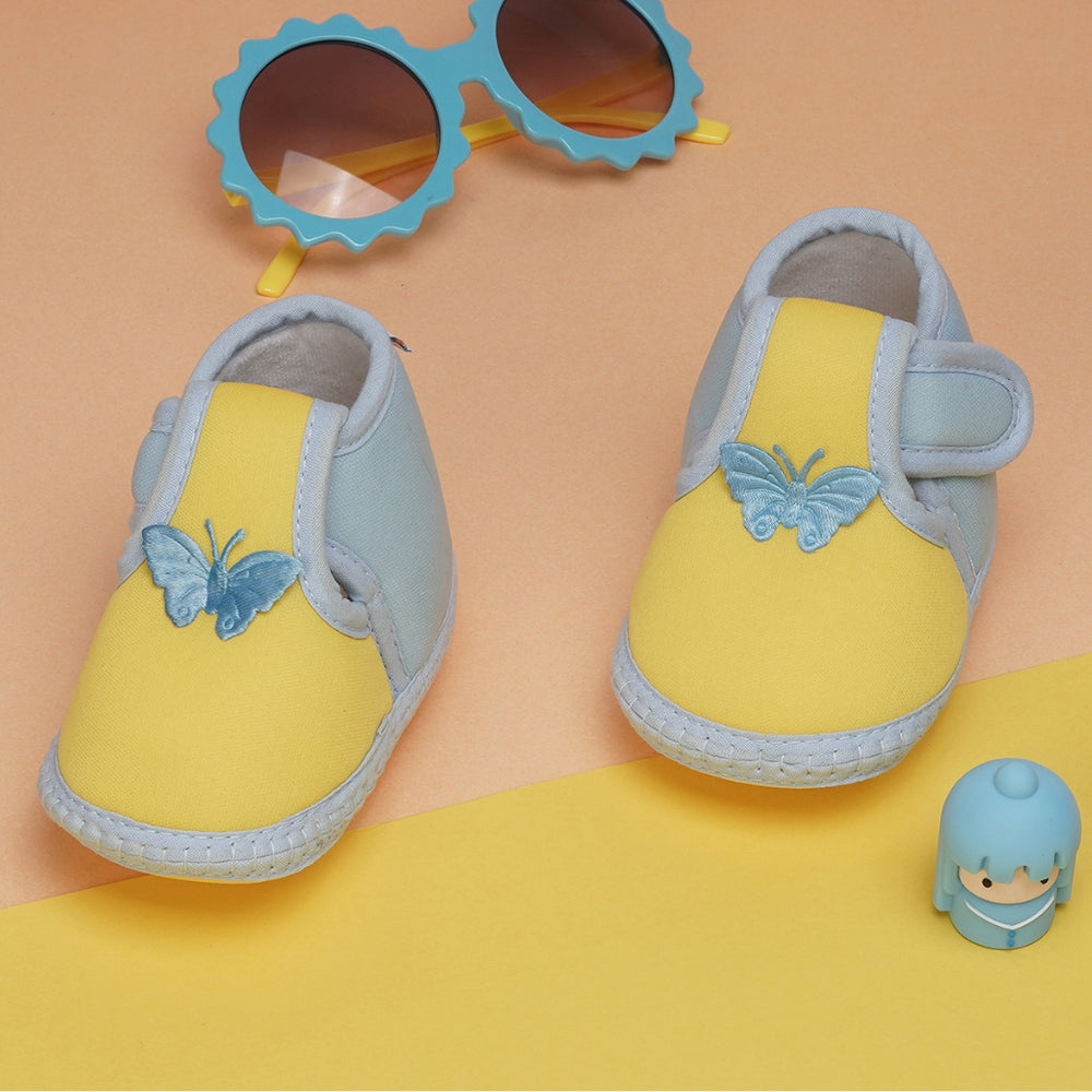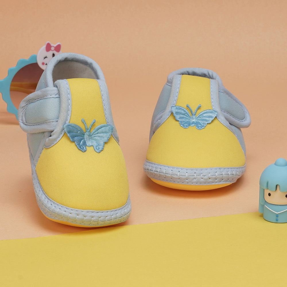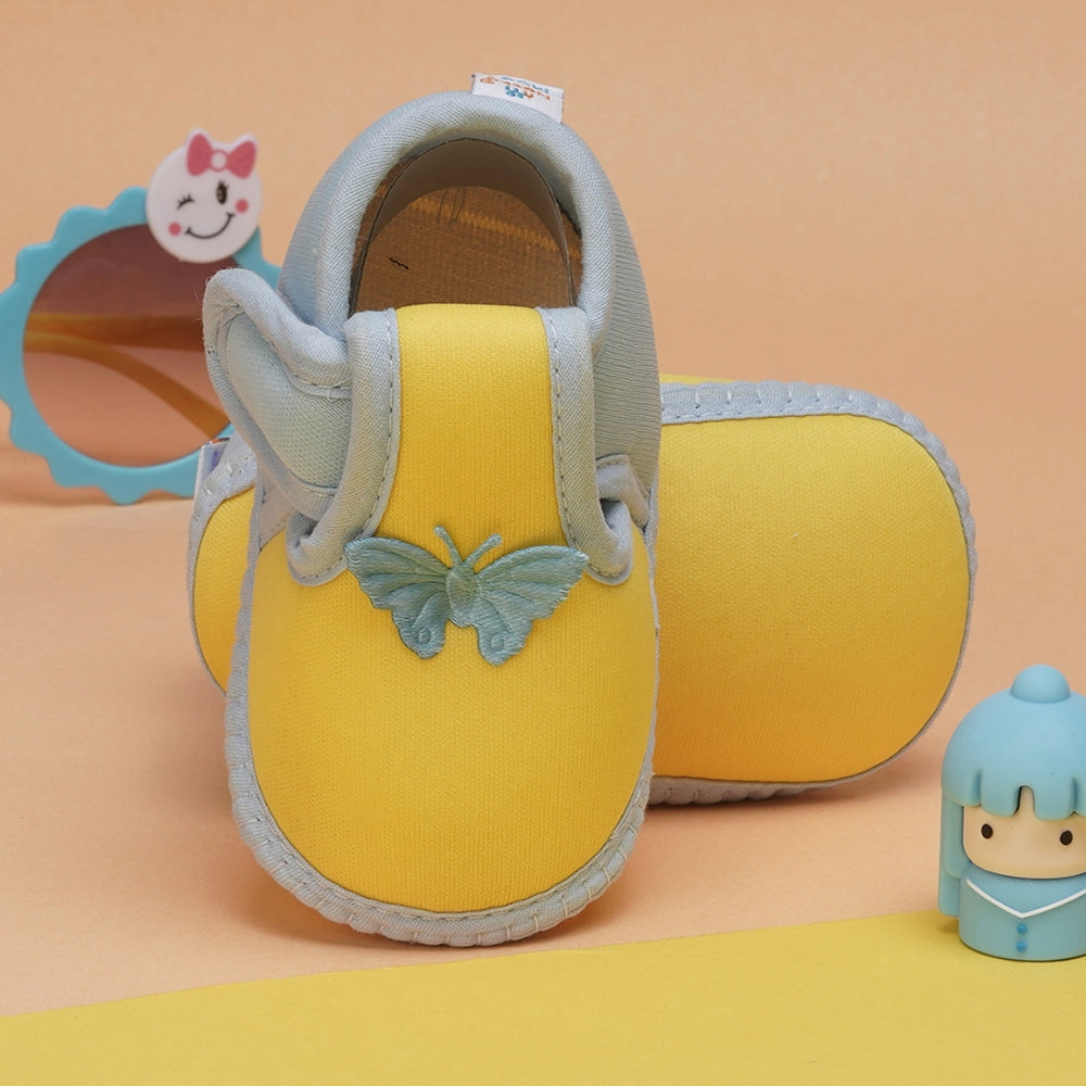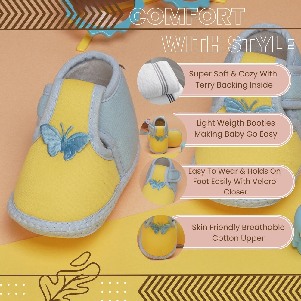 0 To 6 Months Baby Girls Velcro Cotton Shoe/Booties (Yellow,Sky Blue)-BTB4987