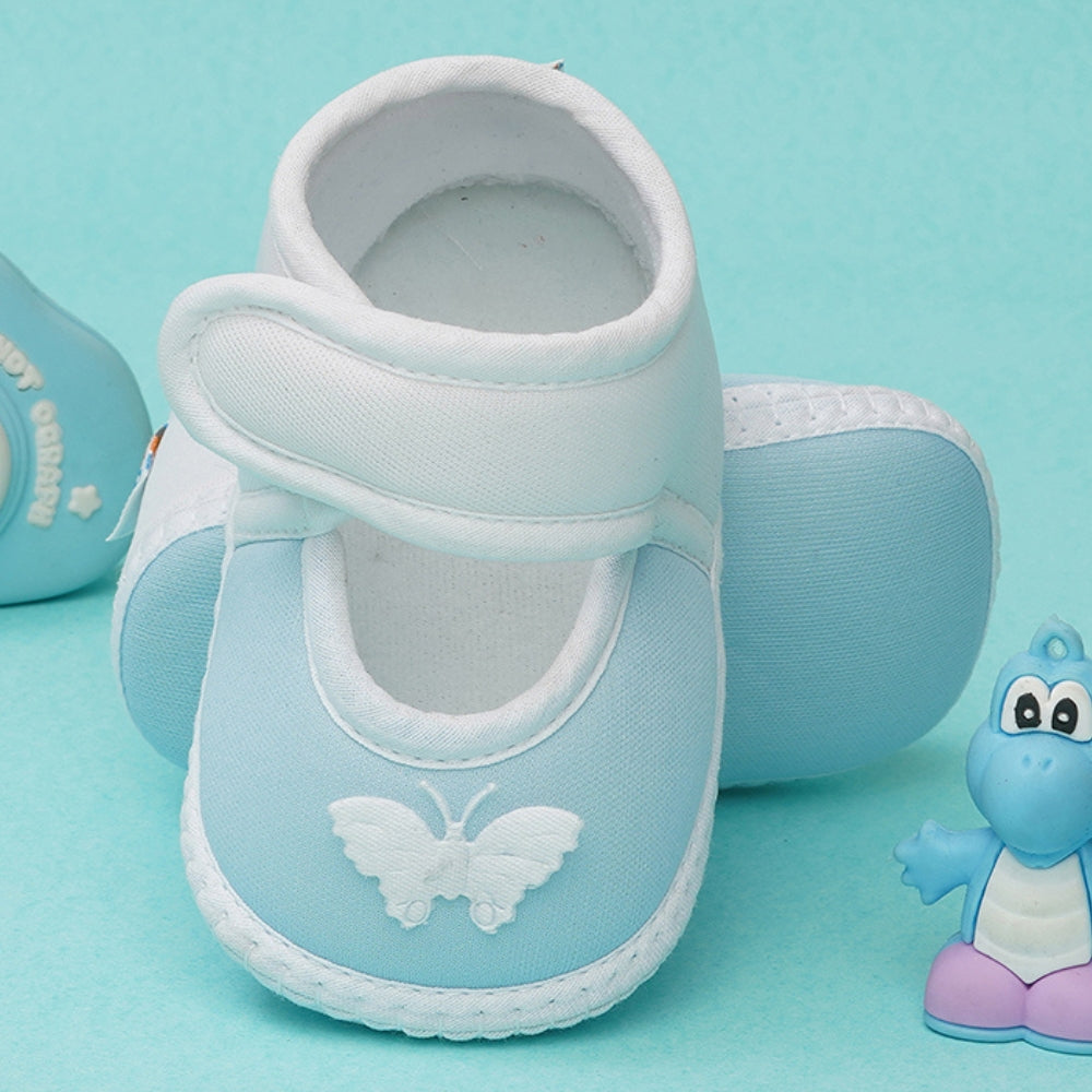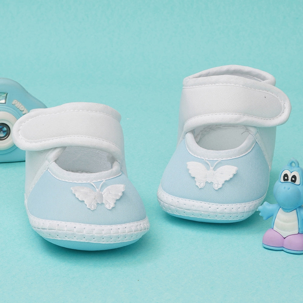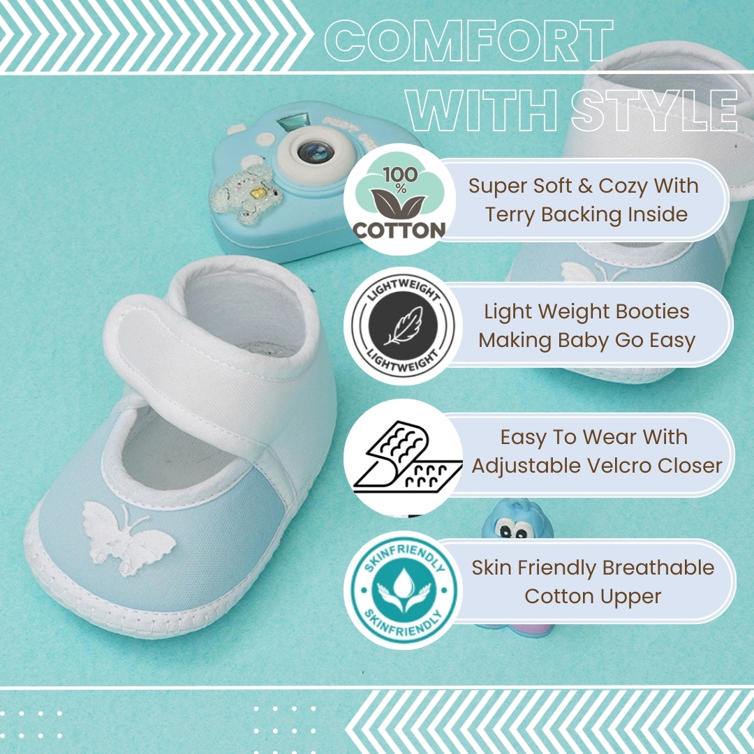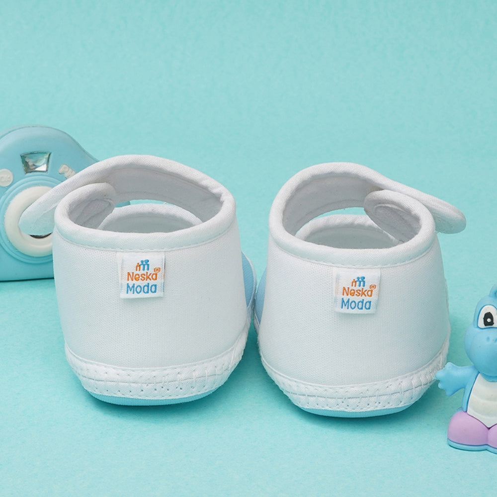 0 To 6 Months Baby Girls Velcro Cotton Shoe/Booties (White,Blue)-BTB4989