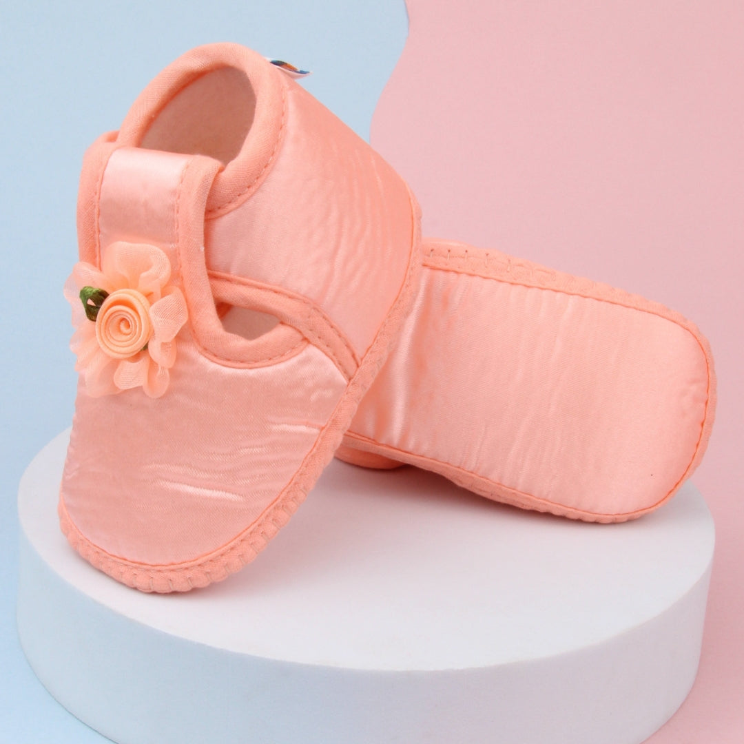 0 To 6 Months Baby Girls Satin Floral Newborn Booties (Orange)-BTB5193